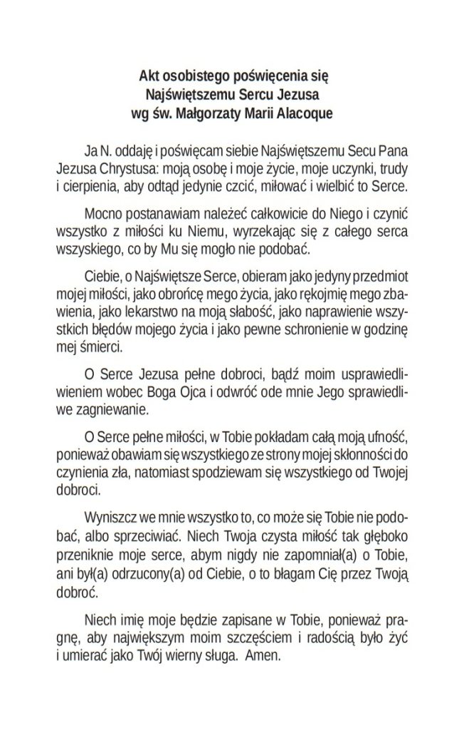 16.30 – Msza św. i odnowienie poświęcenia się Najświętszemu Sercu Jezusowemu. Pożegnanie Obrazu NSPJ oraz rozpoczęcie peregrynacji Obrazu NSPJ w rodzinach