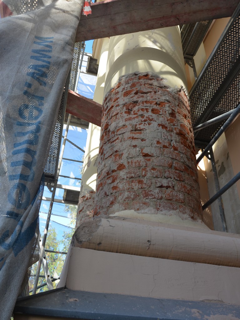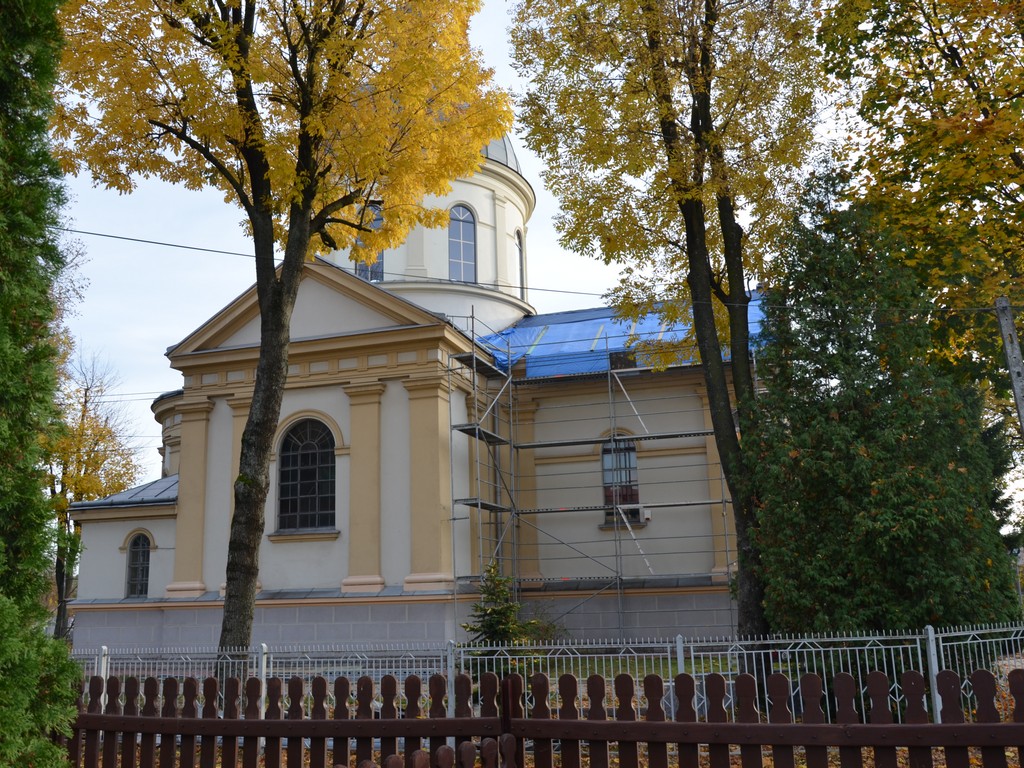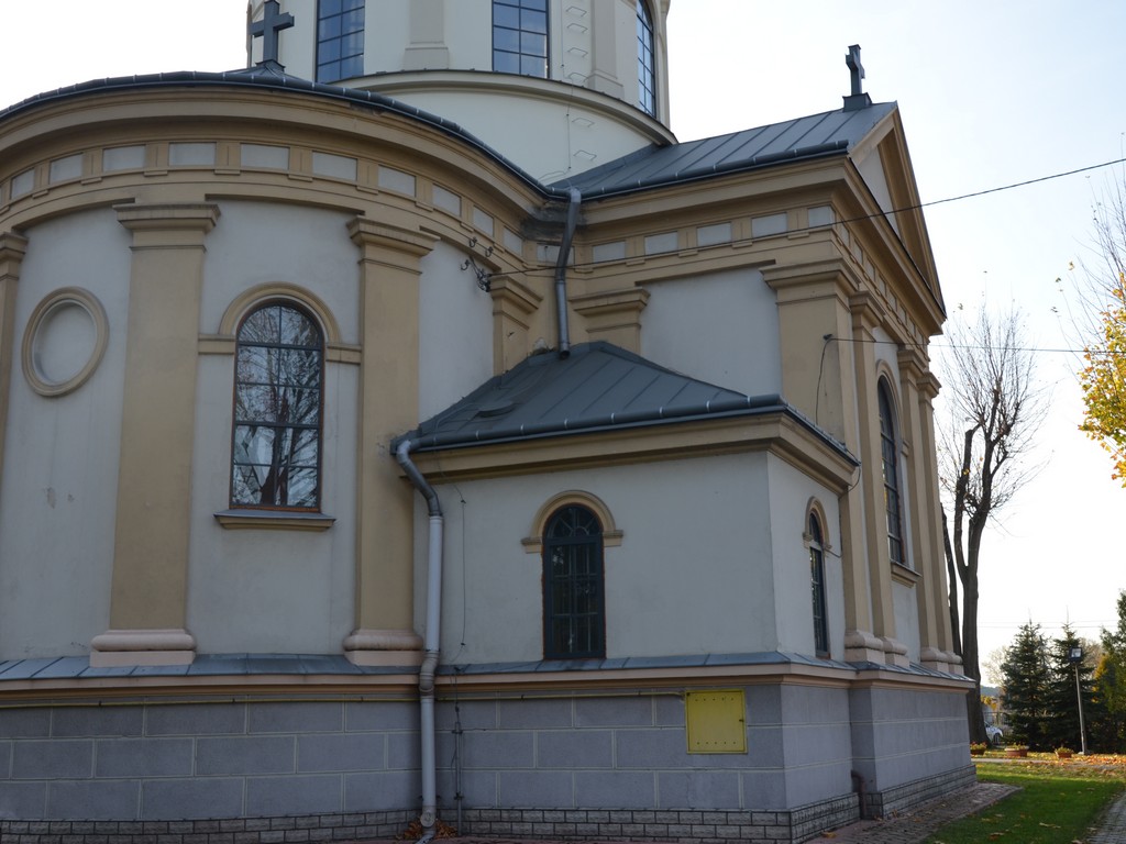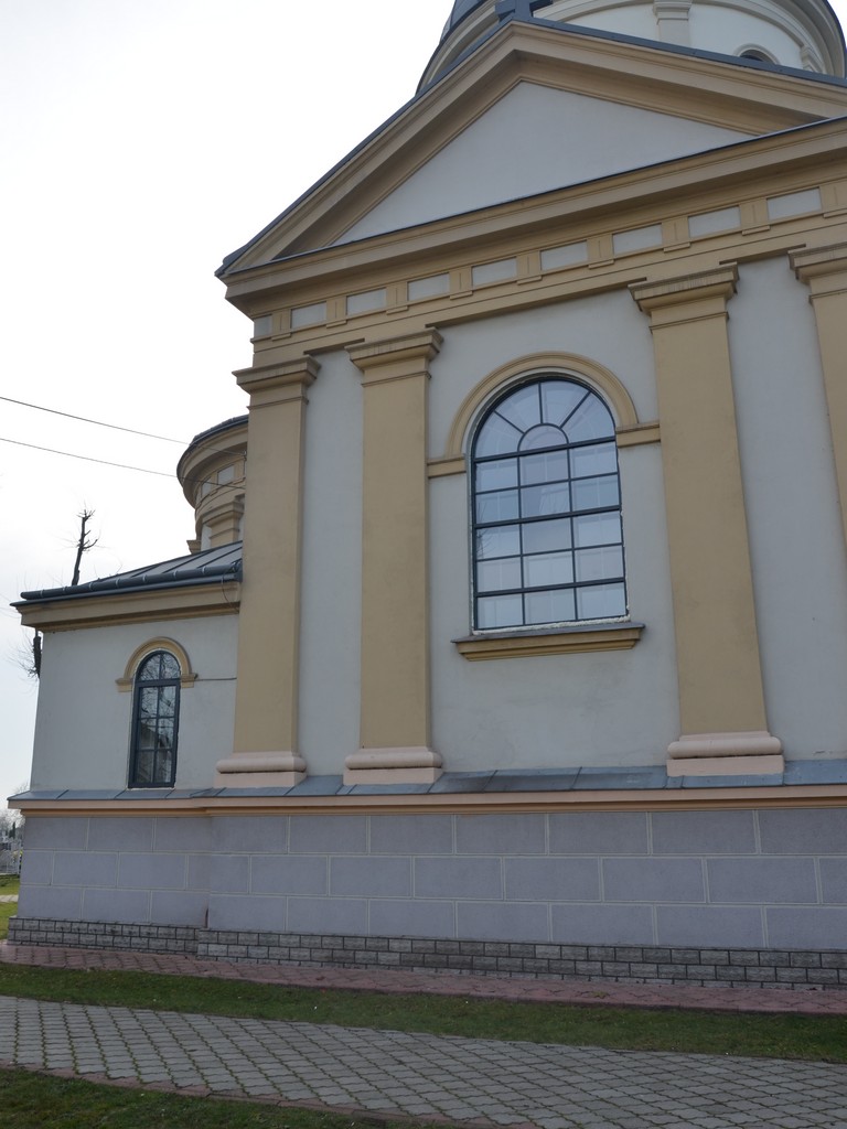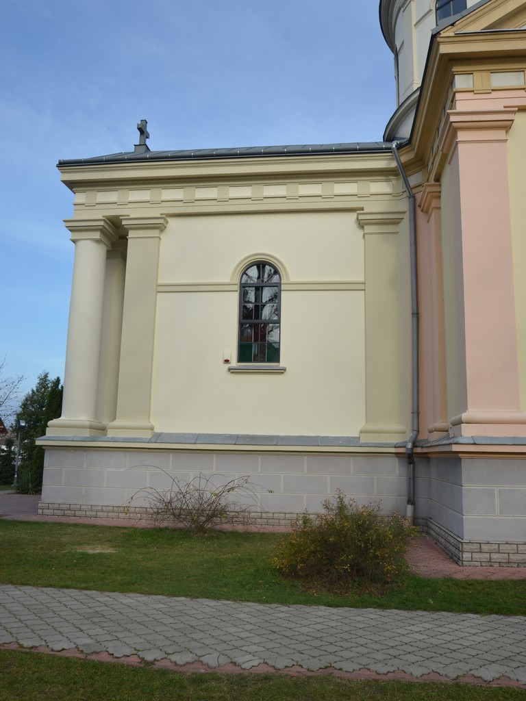 Krótki opis zadania: prace remontowe przy cokole kościoła obejmujące remont gzymsu, remont wyprawy elewacyjnej (bonii) oraz wykonanie w dolnej partii cokołu okładziny z kamienia naturalnego